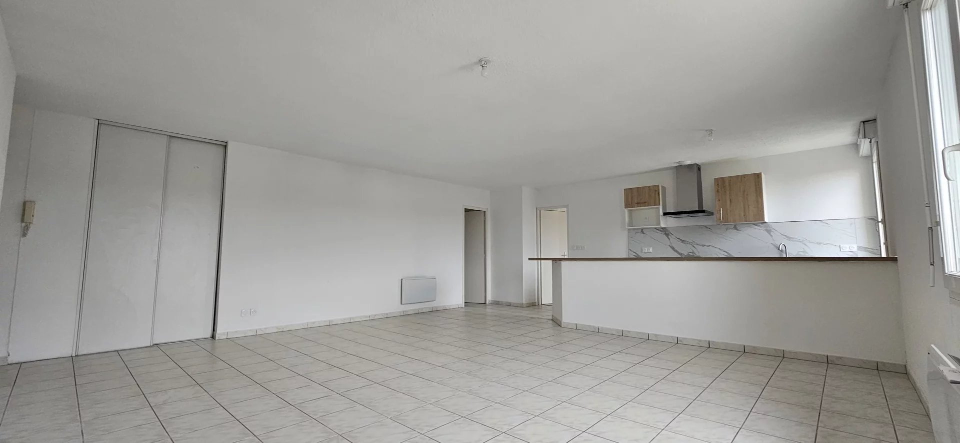 D'une entrée avec rangements, un spacieux séjour lumineux avec une cuisine ouverte semi-équipée (four, lave-vaisselle, hotte, évier, meubles de rangements), un dégagement avec rangements, 3 chambres, une salle de bains et un wc indépendant.